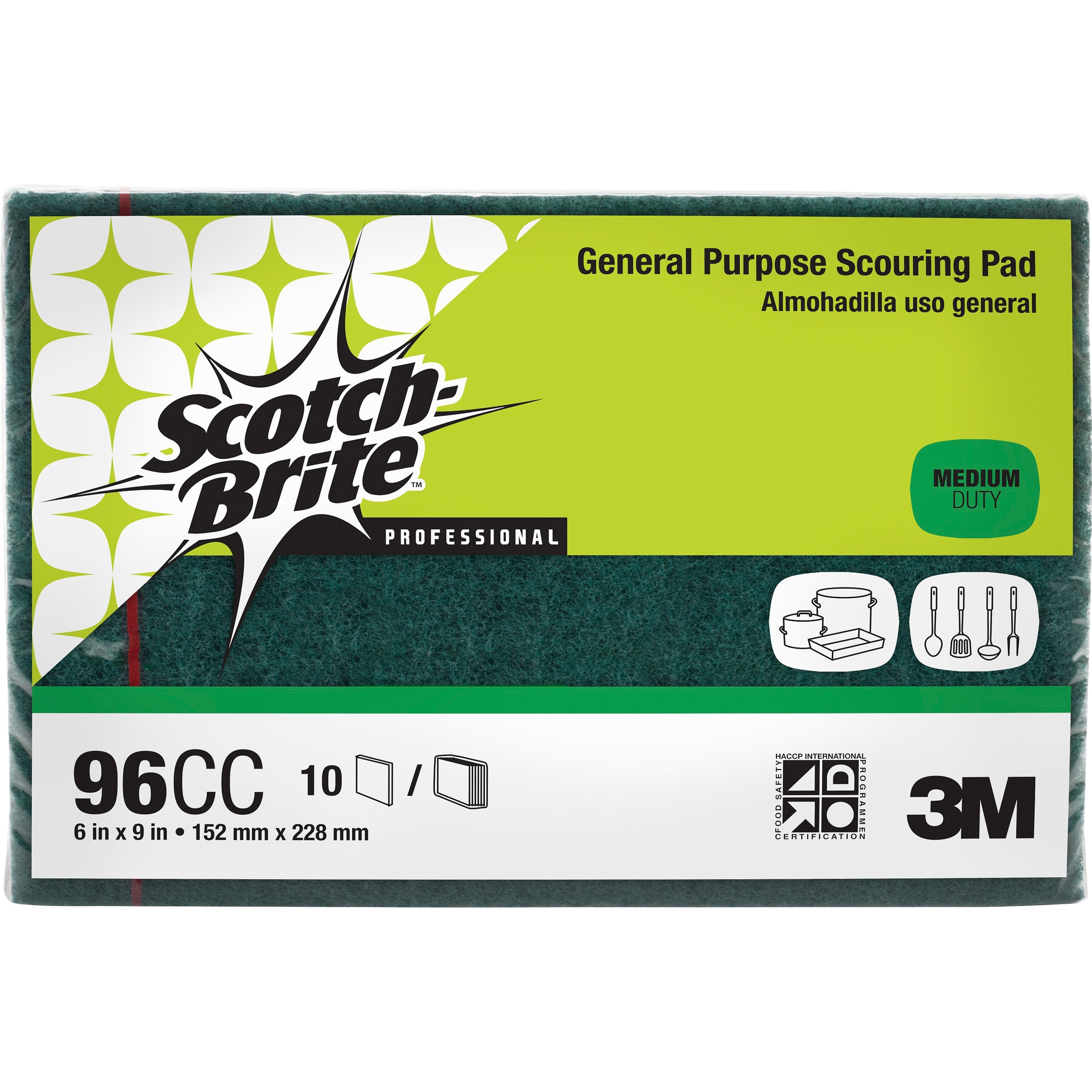 Scotch-Brite General-Purpose Scouring Pads – 6″ Width x 9″ Length – 10/Pack – Synthetic Fiber – Green