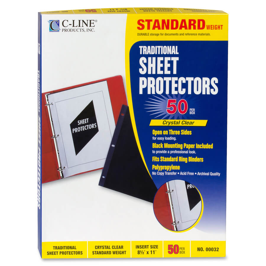 C-Line Traditional Standard Weight Polypropylene Sheet Protector – Letter 8.50″ x 11″ – Polypropylene – 100 / Box – Clear”